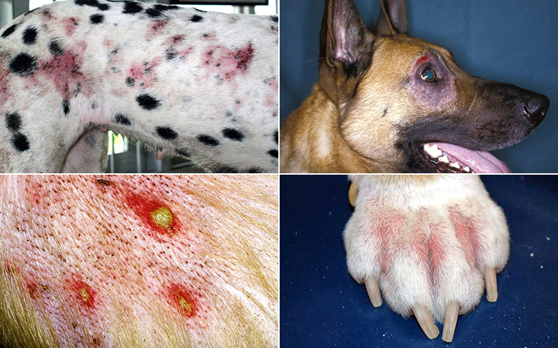 Chó có thể bị dị ứng với nhiều yếu tố, bao gồm thực phẩm, bụi bẩn, phấn hoa, hoặc bọ chét. Dị ứng có thể gây ra các phản ứng như ngứa, rụng lông, hoặc viêm da.